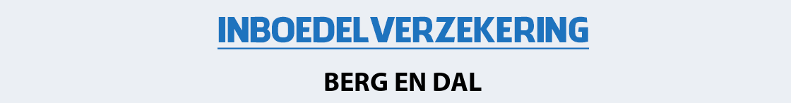 Wil jij een goedkope inboedelverzekering voor jouw huis in Berg en Dal (gemeente Berg en Dal, Gelderland)? Via een speciale inboedelverzekering verzeker je de complete inboedel tegen risico’s als bliksem, vandalisme, inbraak, water. Bijvoorbeeld bij ANWB, Ditzo of Reaal. Je ontvangt een vergoeding bij schade aan o.a. spiegel of denk aan een defecte televisie. Zo’n dekking is uiteraard geen verplichting, echter wel degelijk erg verstandig. De best gewaardeerde of goedkoopste inboedelverzekering van Berg en Dal achterhaal je met behulp van onze eenvoudige vergelijker. Bijvoorbeeld REAAL Verzekeringen pakket en Lancyr pakket. Voer alle informatie goed en volledig in, en raadpleeg alle geschikte verzekeringen.